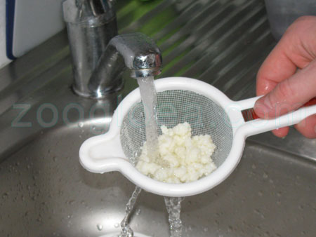 Put the jar with the Tibetan milk mushroom in a quiet light place out of direct sun (Picture 6). Let it make sour within 24 hours provided that 2 teaspoons of Tibetan milk mushroom culture are used. If you use more of it milk is made sour faster. In 24 hours filter the kefir obtained through a sieve or a colander with small meshes and do the above again according to the given instruction.